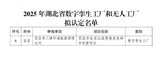 本網(wǎng)訊(張?zhí)煊睿?span>近日,湖北省經(jīng)濟和信息化廳正式公布了2025年湖北省數(shù)字孿生工廠和無人工廠認定名單,宜昌垃圾發(fā)電項目脫穎而出,被認定為“湖北省數(shù)字孿生工廠”,這一榮譽不僅是對項目自身數(shù)字化建設的肯定,更是公司踐行“雙碳”目標、助力湖北省制造業(yè)高端化、智能化、綠色化發(fā)展的又一重要成果。