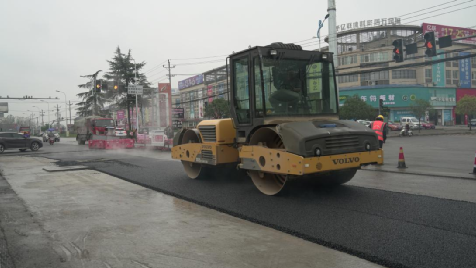 城市另一頭,迎賓大道升騰著熱氣,瀝青運(yùn)料車和壓路機(jī)正熱火朝天地打著配合,進(jìn)行著瀝青攤鋪工作。經(jīng)過數(shù)月的布管、回填,這條道路的雨污分流施工已接近尾聲。