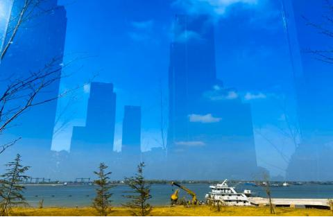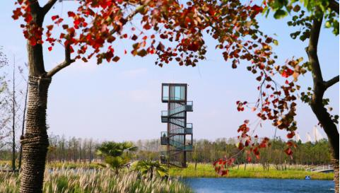 攝影愛好者在江東水生態公園進行攝影練習? 拍攝:肖佳法