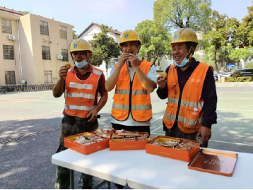 在中秋節來臨之際,湖南沅江項目公司開展了“情滿中秋 心系工友”慰問活動,為400余名建設者送上象征“團圓”的月餅,感謝他們為長江大保護項目建設作出的貢獻,并叮囑大家一定要注意施工安全,平平安安過中秋。
