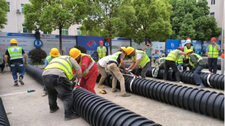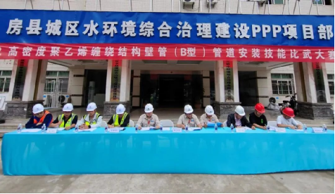 房縣項目公司與中國水電四局聯(lián)合舉辦了共抓長江大保護勞動競賽,共開展了包括有限空間應急救援、高密度聚乙烯纏繞結構壁管道安裝技能比武兩個賽項,共有12支隊伍、近200人參賽。